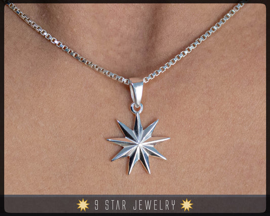 9 Star Baha'i Pendant: 925 Sterling Silver