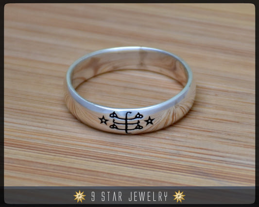 Sterling Silver Baha'i Ringstone Symbol Band Ring - Sizes 2.5 to 10.5