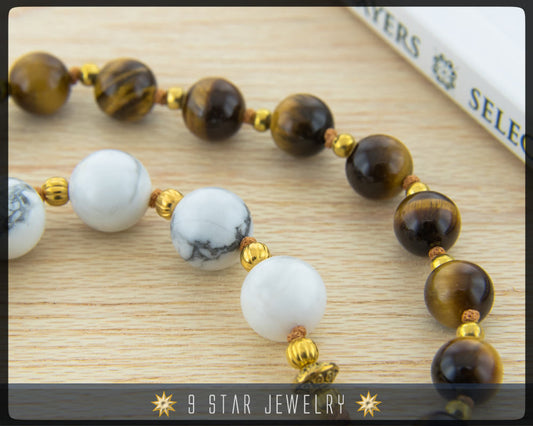 Tiger's Eye & Howlite Hand Knotted Baha'i Prayer Beads 5x19 (Alláh-u-Abhá) "Strive"