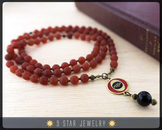 Matte Red Agate Baha'i Prayer Beads-with bahai ringstone symbol-95 "Blessed Soul"