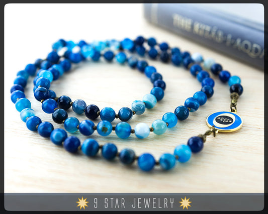 Blue Stripes Agate Baha'i Prayer Beads-Stone of Protection+Strength "Waves of One Sea"