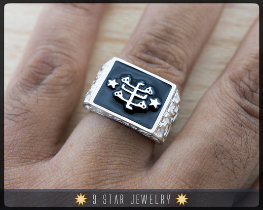 Statement Ring "Ring of Declaration" with Baha'i Ring Stone Symbol: 925 Sterling Silver