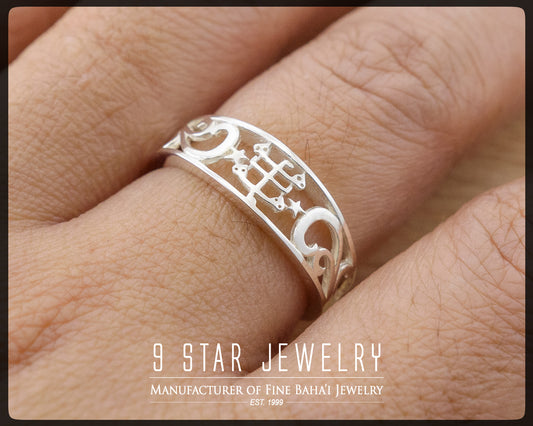 Sterling Silver Baha'i Ring Stone Symbol Ring - Sizes 3 to 13