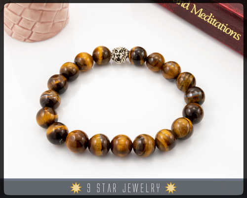 Tiger's Eye Bracelet with Baha'i ringstone symbol "Precious Fellowship"