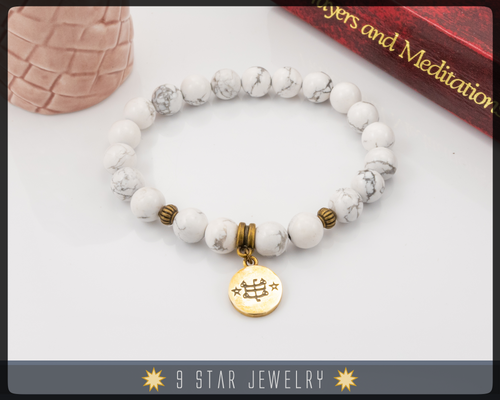 Howlite Bracelet with Baha'i ringstone symbol "Humility"