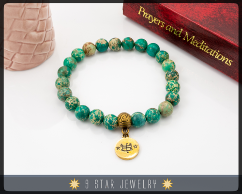 Green Sea Sediment Jasper Bracelet with Baha'i ringstone symbol "Adira"