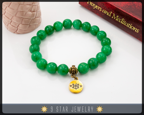 Jade Baha'i prayer beads bracelet w/ baha'i ringstone symbol "Joyous"