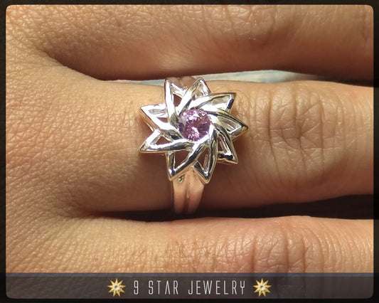 Pink Sapphire - Sterling Silver 9 Star Baha'i Ring with genuine gemstone - (Limited Edition)