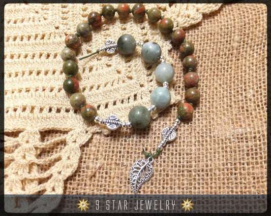 Unakite & Moss Agate Hand Knotted Baha'i Prayer Beads "The Ardent Love"