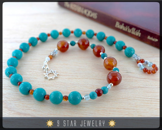 Turquoise & Carnelian w/ Sterling Silver - Baha'i Prayer Beads 5x19 "Devotion"