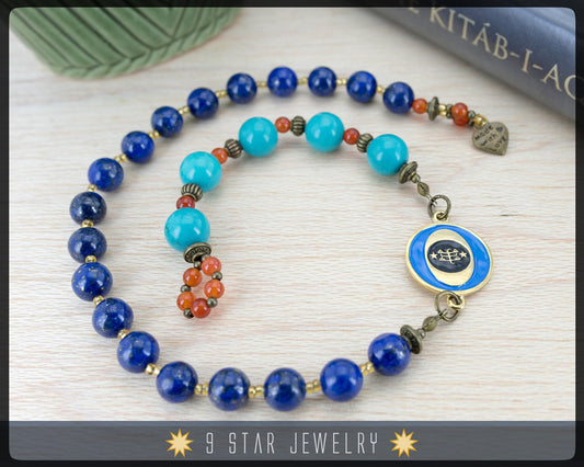 Turquoise & Lapis Lazuli w/ bahai ringstone symbol - Baha'i Prayer Beads 5x19 (Alláh-u-Abhá) "Azure"