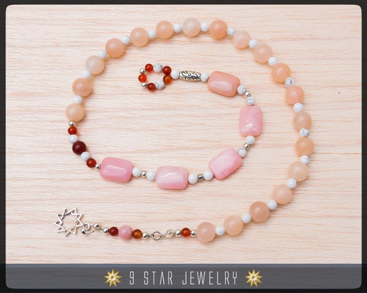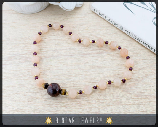 Pink Opal & Blood Stone w/Carnelian, Tigers Eye Baha'i Prayer Beads "Angelic"