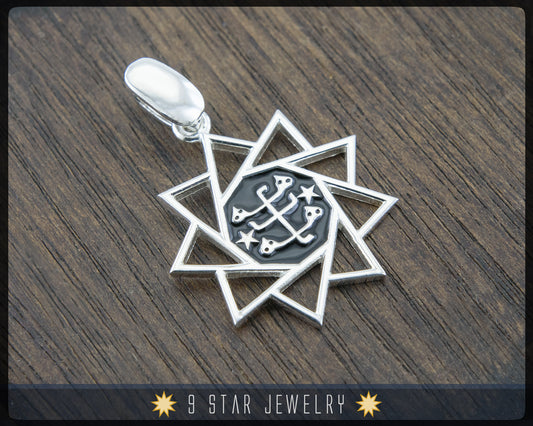 925 Sterling Silver Baha'i 9 Star Pendant (big)
