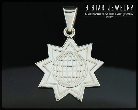 Pendentif Baha'i « Globe » 9 étoiles en argent sterling 925